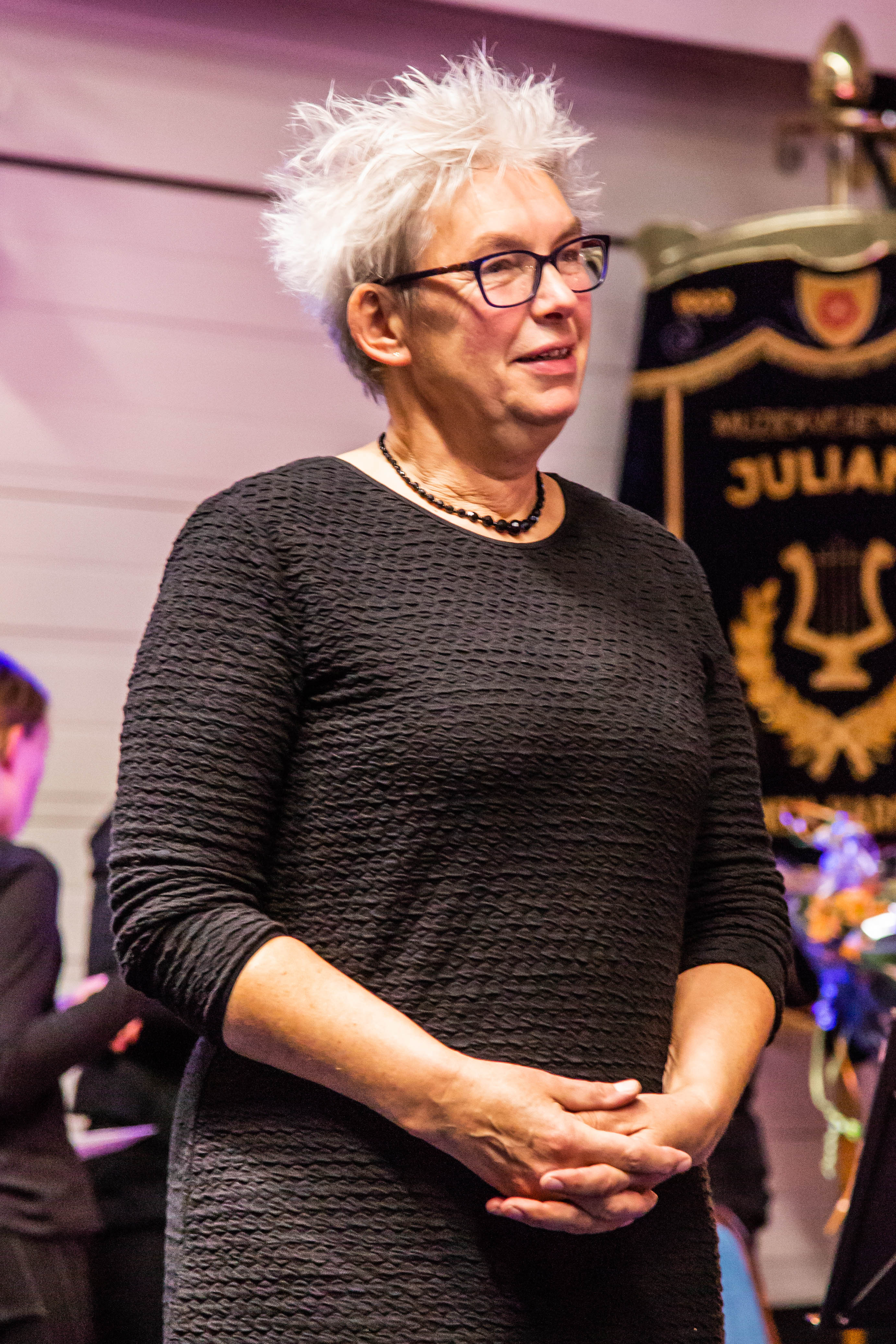 Gerrie Brinkman, meer dan 25 jaren lid. Zij speelt klarinet.