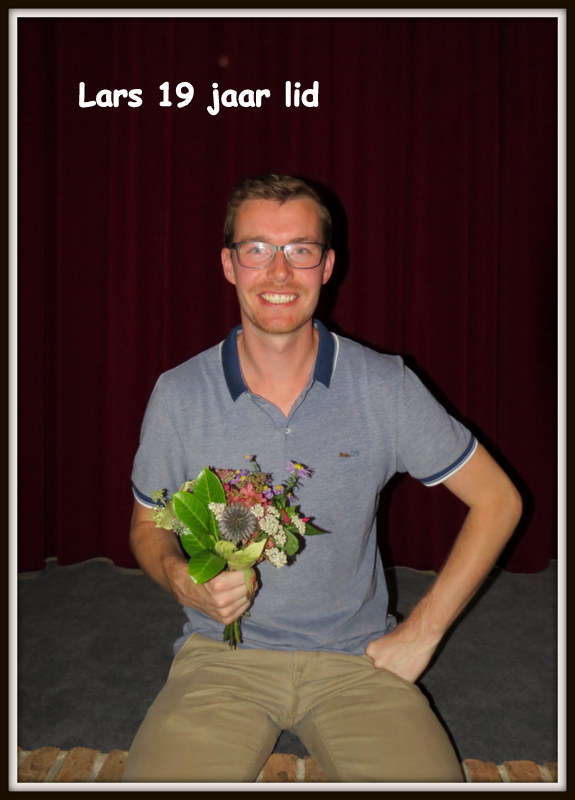 Lars Brinkman, 19 jaren lid. Hij speelt slagwerk.
