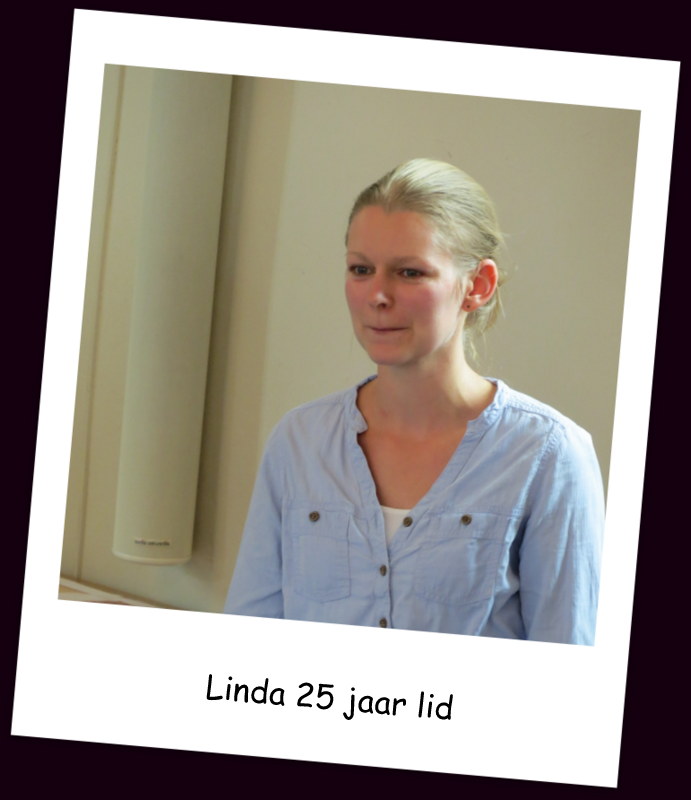 Janny Westendorp, 25 jaren lid. Zij speelt klarinet.